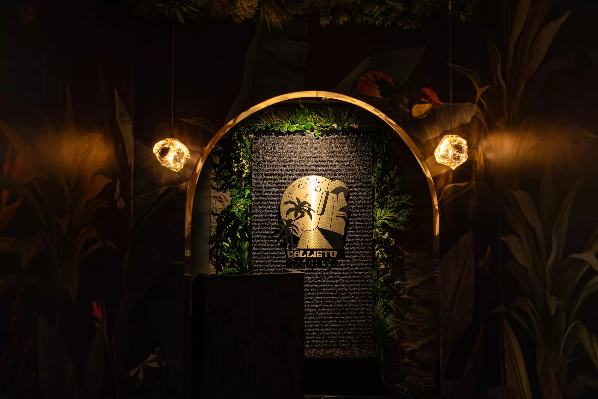 “Moon Jungle Tiki Bar Speakeasy” These are the initial descriptor words for the food and beverage concept that is now, Callisto. A transcending take on the tiki theme, Callisto transports its guests through a detailed and immersive hospitality experience unlike any other in the region. The design integrates organic shapes, curves, tropical greenery, natural wood, bamboo, and other natural elements to establish a luscious, moody speakeasy atmosphere where guests can escape into a tasteful tropical getaway.