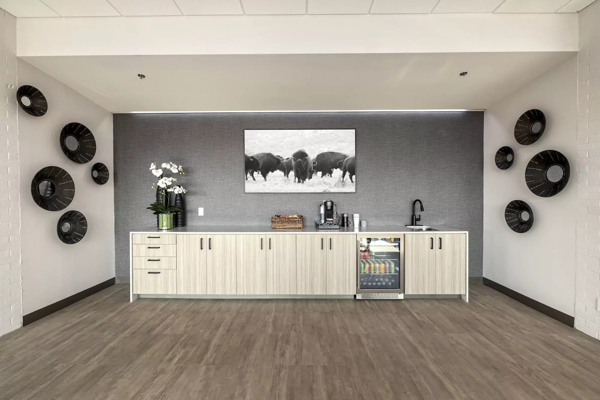 Encore Bank‘s office and teller space in downtown Fayetteville was designed to transform the traditional banking experience by crafting an open, approachable environment. The goal was to foster a more engaging and personable interaction between clients and employees. The space features an inviting lounge and reception area, using modern design elements to create a comfortable and welcoming atmosphere.
