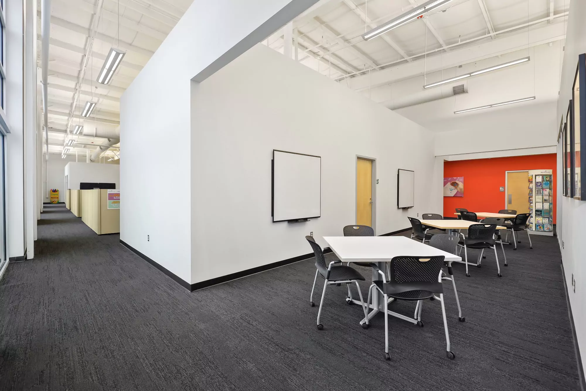 Located on the east side of a large multi-tenant office building, the existing Hallmark space provided the perfect opportunity to bridge together the merging offices and to develop the underutilized spaces. Groups of cubicles were removed from the open floor plan to allow for the installation of the new spaces comprised of private offices and collaboration spaces. Touchdown areas were incorporated to allow employees to have a place to step away from their desk and have informal discussions. Pinboards and marker boards were added throughout to provide interactive zones. By integrating distinct moments for collaboration and interaction, the new space forges both companies together.