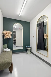 The client’s primary goal was to create a space that reflected their brand and fit into the upscale neighborhood it would be located in. The existing space was laid out nicely to accommodate a small core with a restroom, small office, and ADA fitting room; the rest of the space was to be transformed into an immersive, luxurious experience for its patrons.