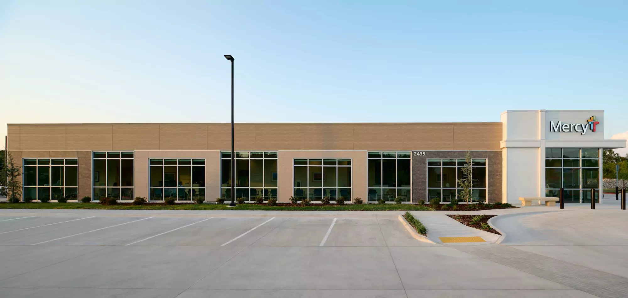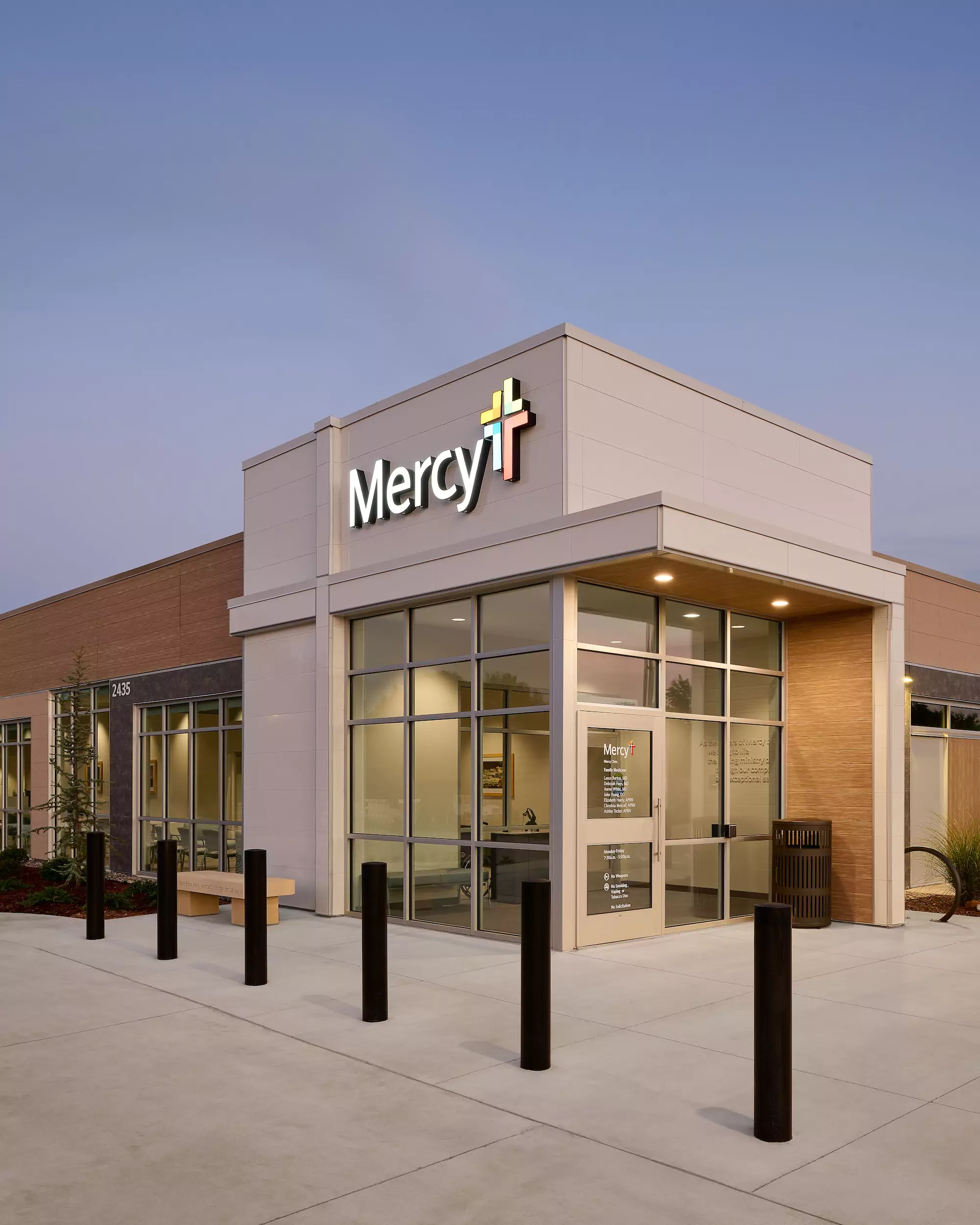 As one approaches the clinic, the first striking feature is the sleek and contemporary façade, a departure from Mercy’s traditional clinic design.