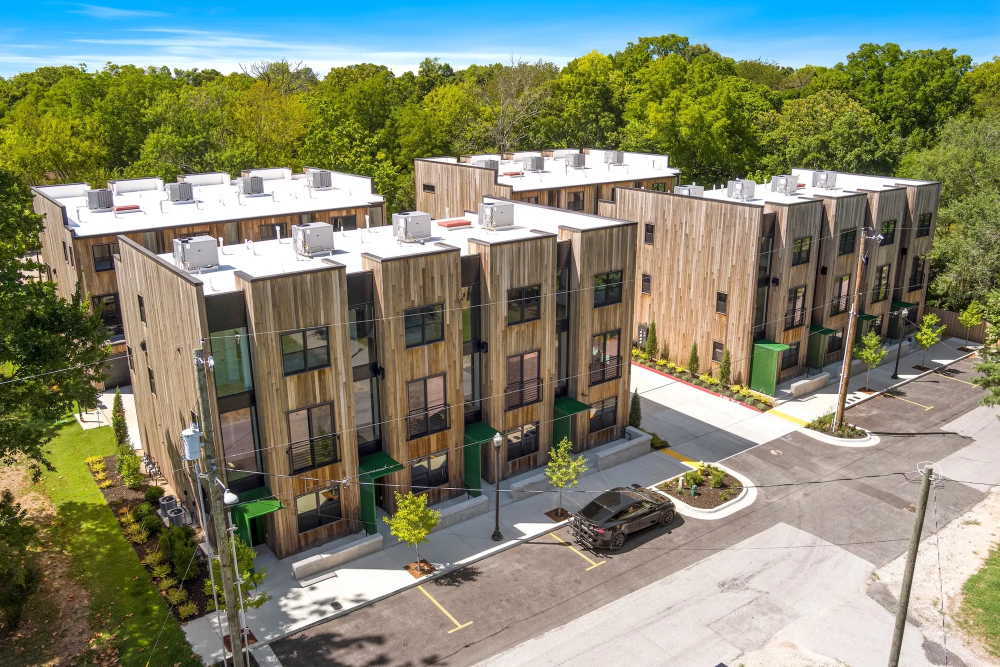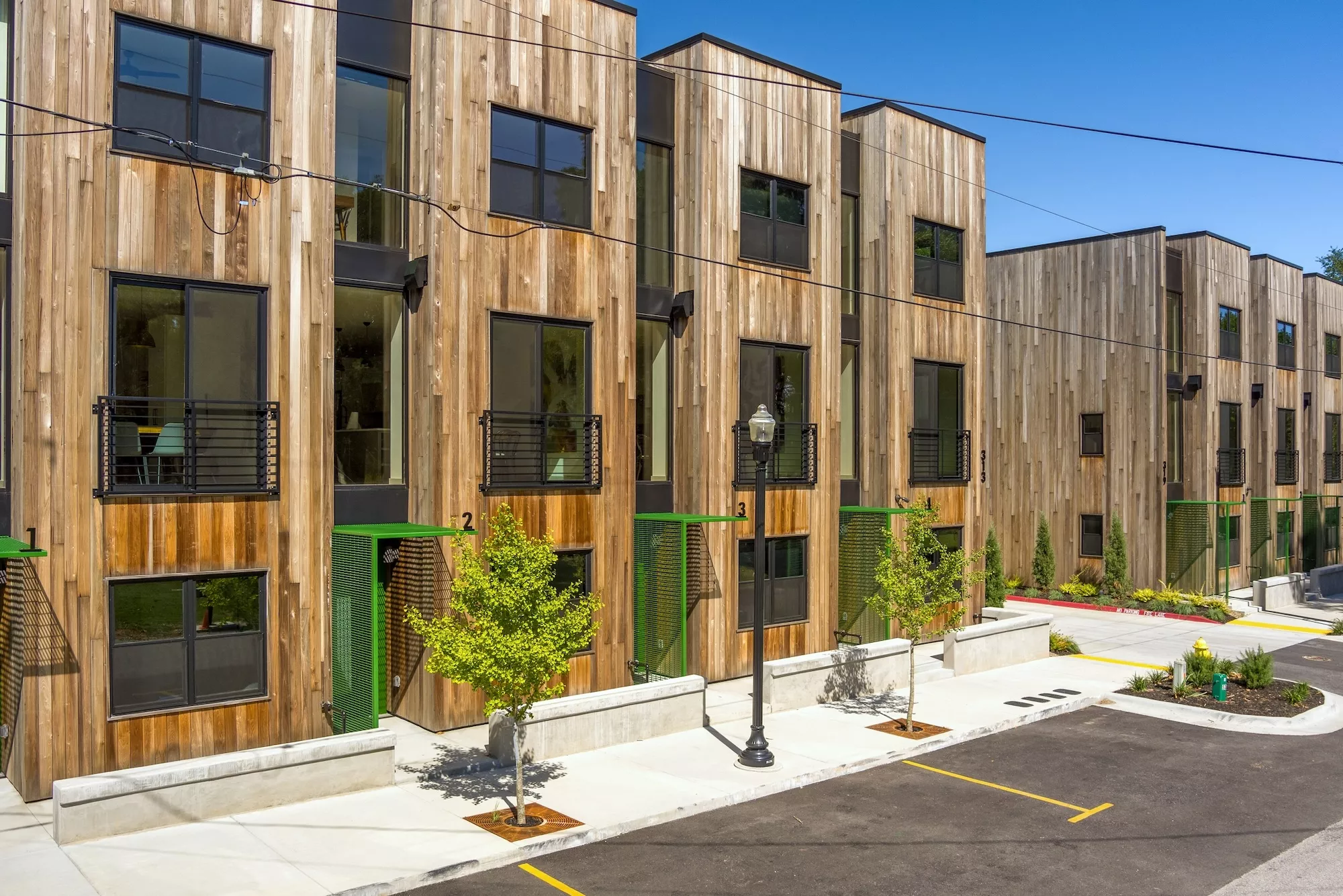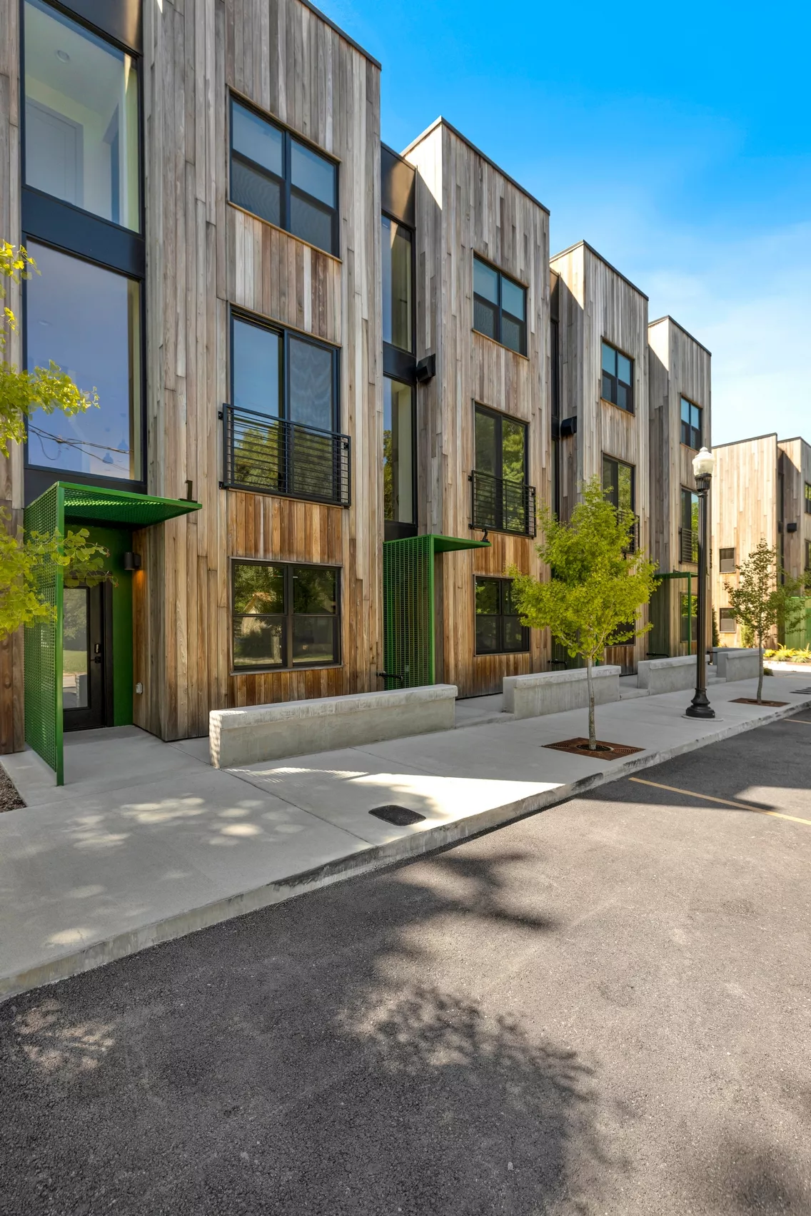 The Trailhead Mews Townhomes in downtown Bentonville is a project brought to life after being left only partially constructed for several years by the previous owners. The design works within the constraints of the existing unit layouts while entirely re-imagining the exterior facade design and new interior finishes.