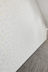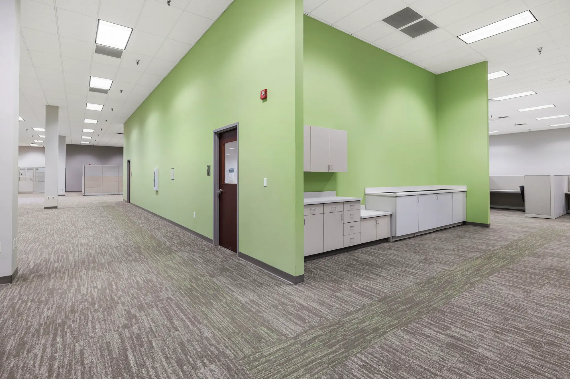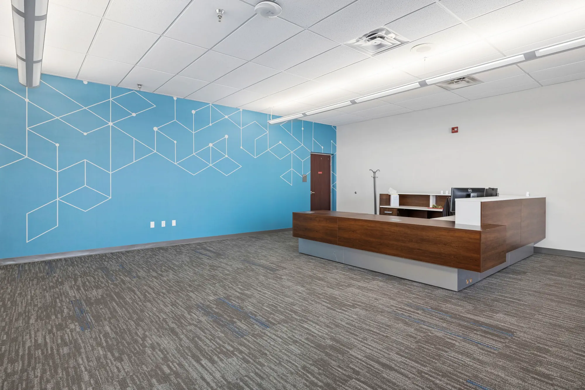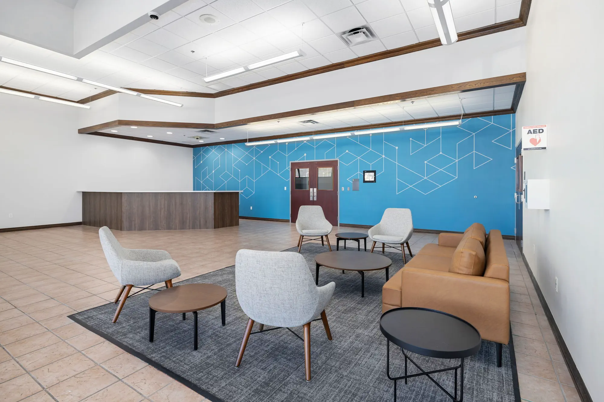 BUF Studio provided comprehensive interior renovation, branding, and planning services for a 71,000-square-foot occupied University of Arkansas campus facility. The project focused on improving circulation, identity, and day-to-day functionality through integrated flooring and wayfinding strategies, targeted renovations to high-visibility common areas, and cohesive furniture planning throughout the building.