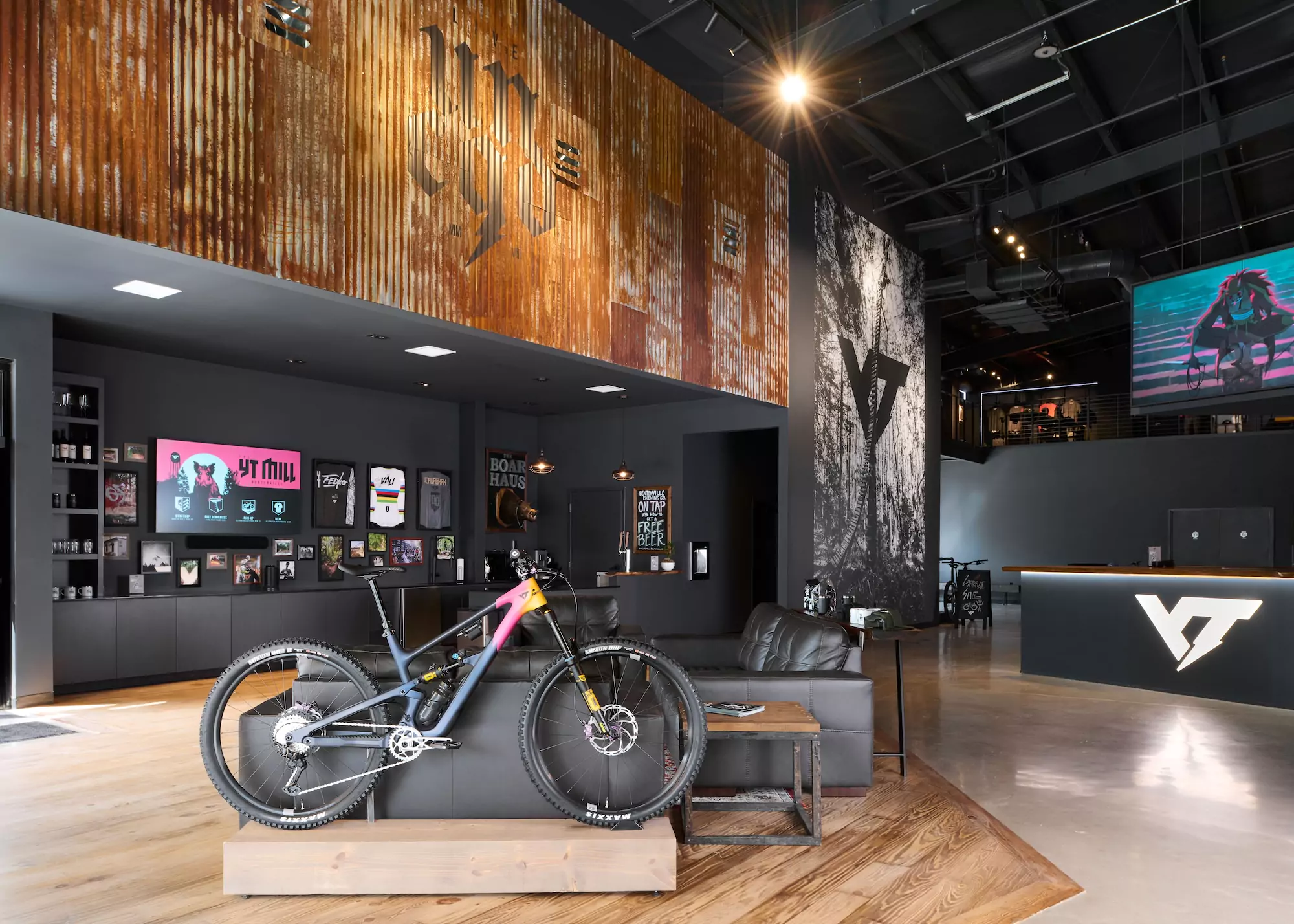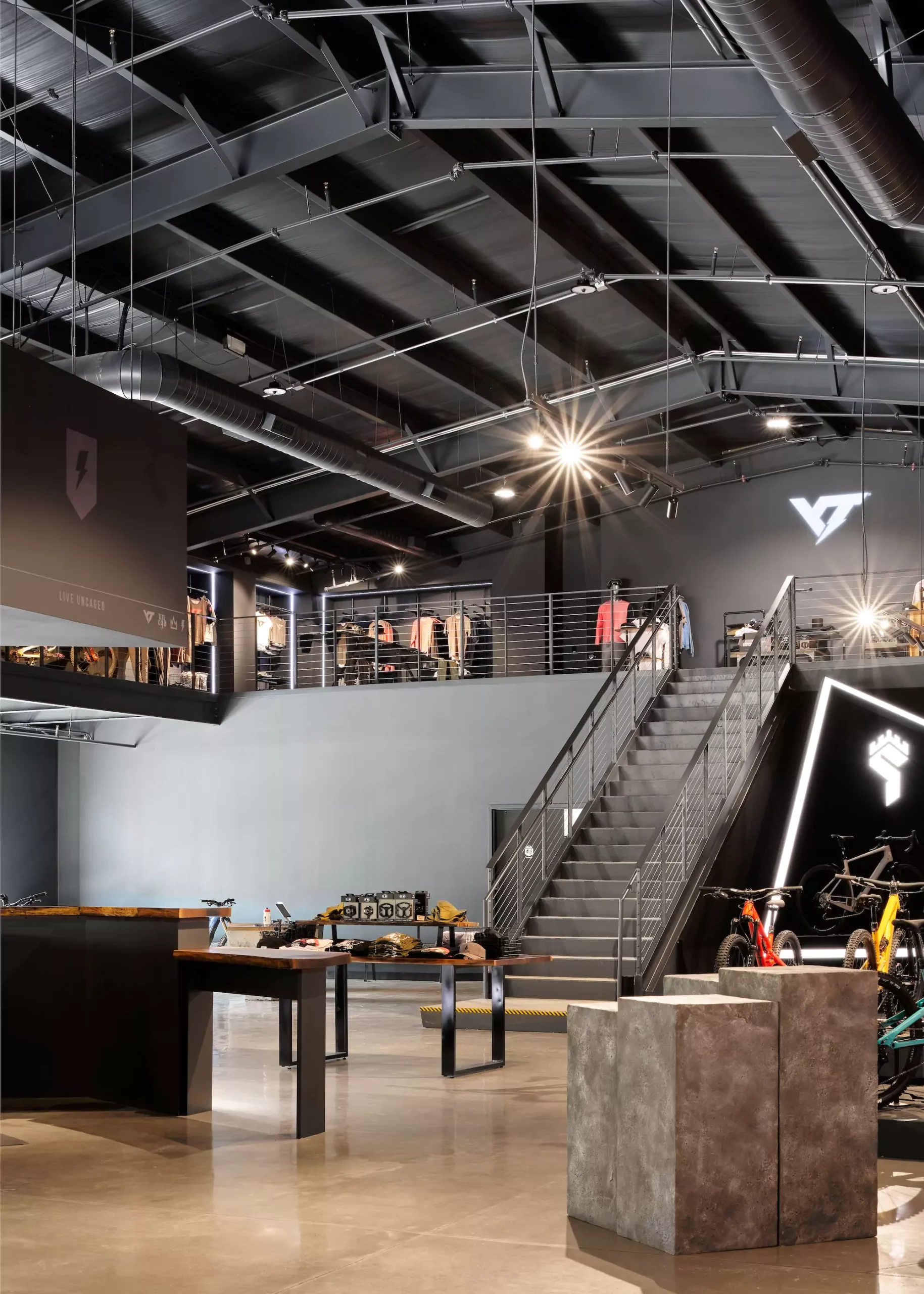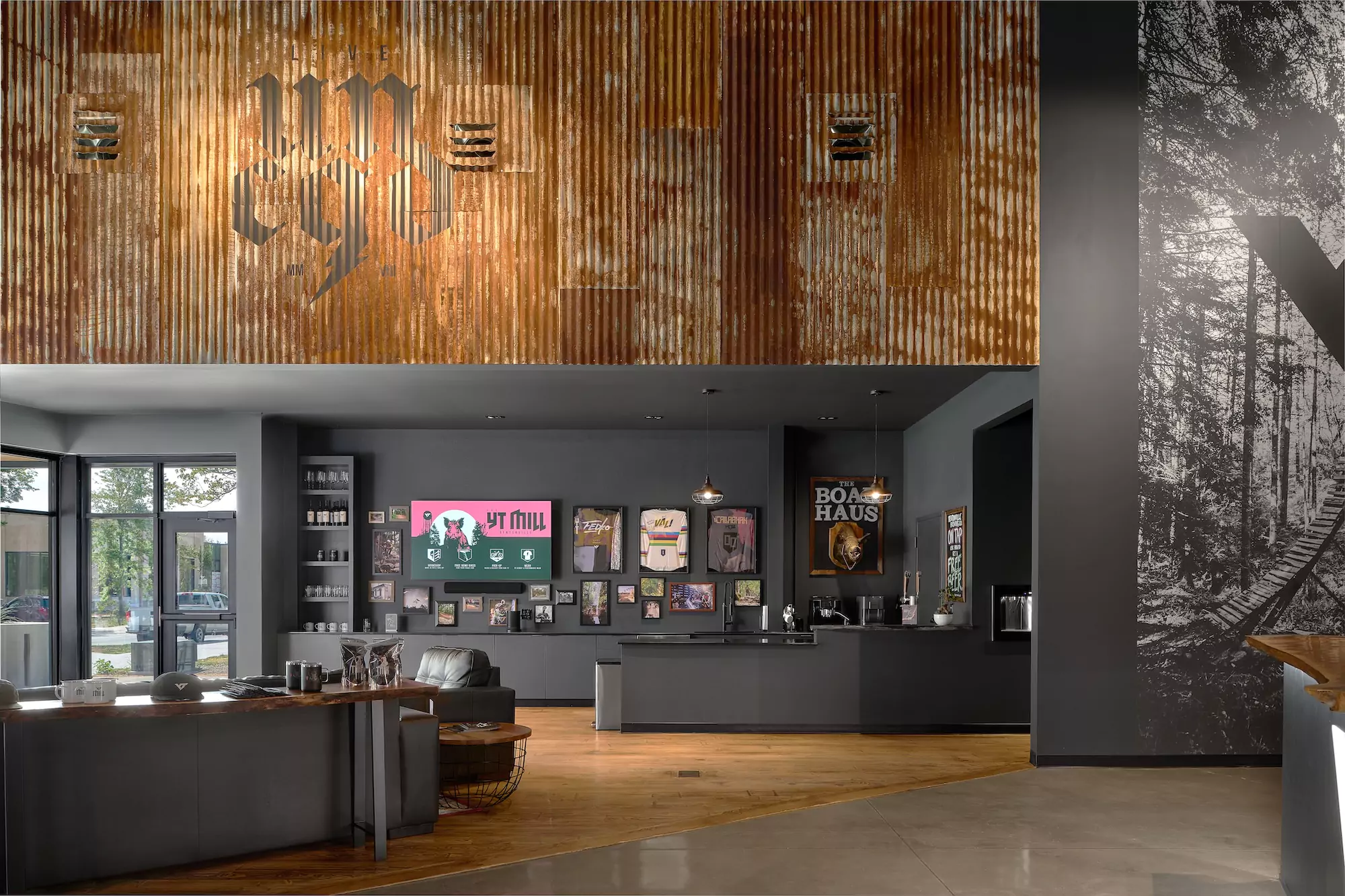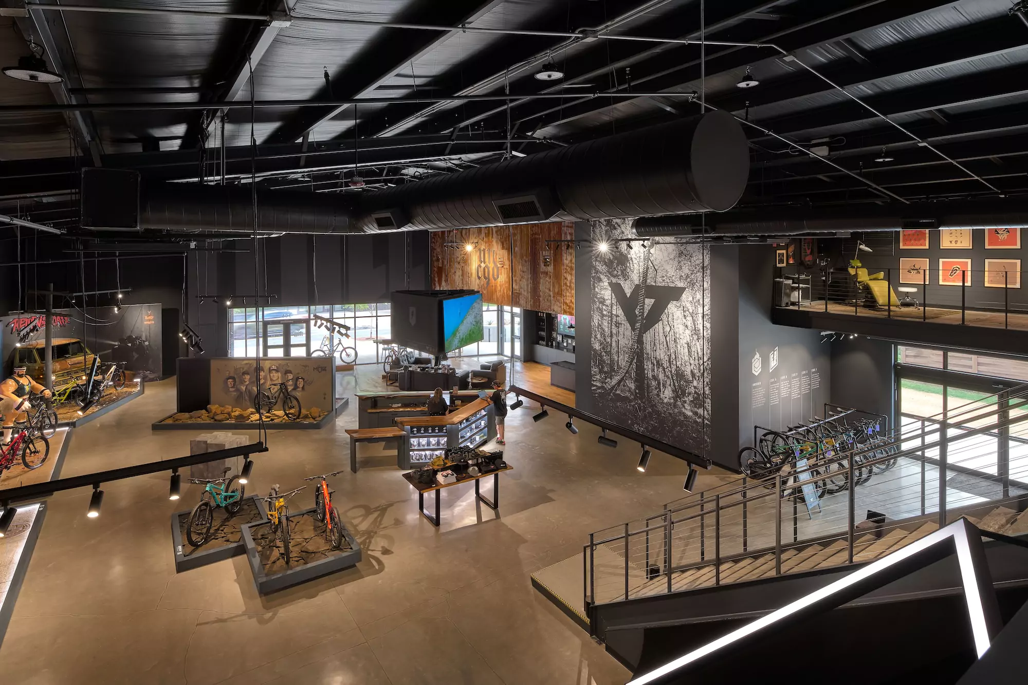 The YT Bentonville Mill was designed in close collaboration with the client to reflect the brand’s bold identity while supporting seamless operations. As part of YT’s direct-to-consumer program, the space immerses riders and fans with the brand through bike demos, events, and interactive displays.