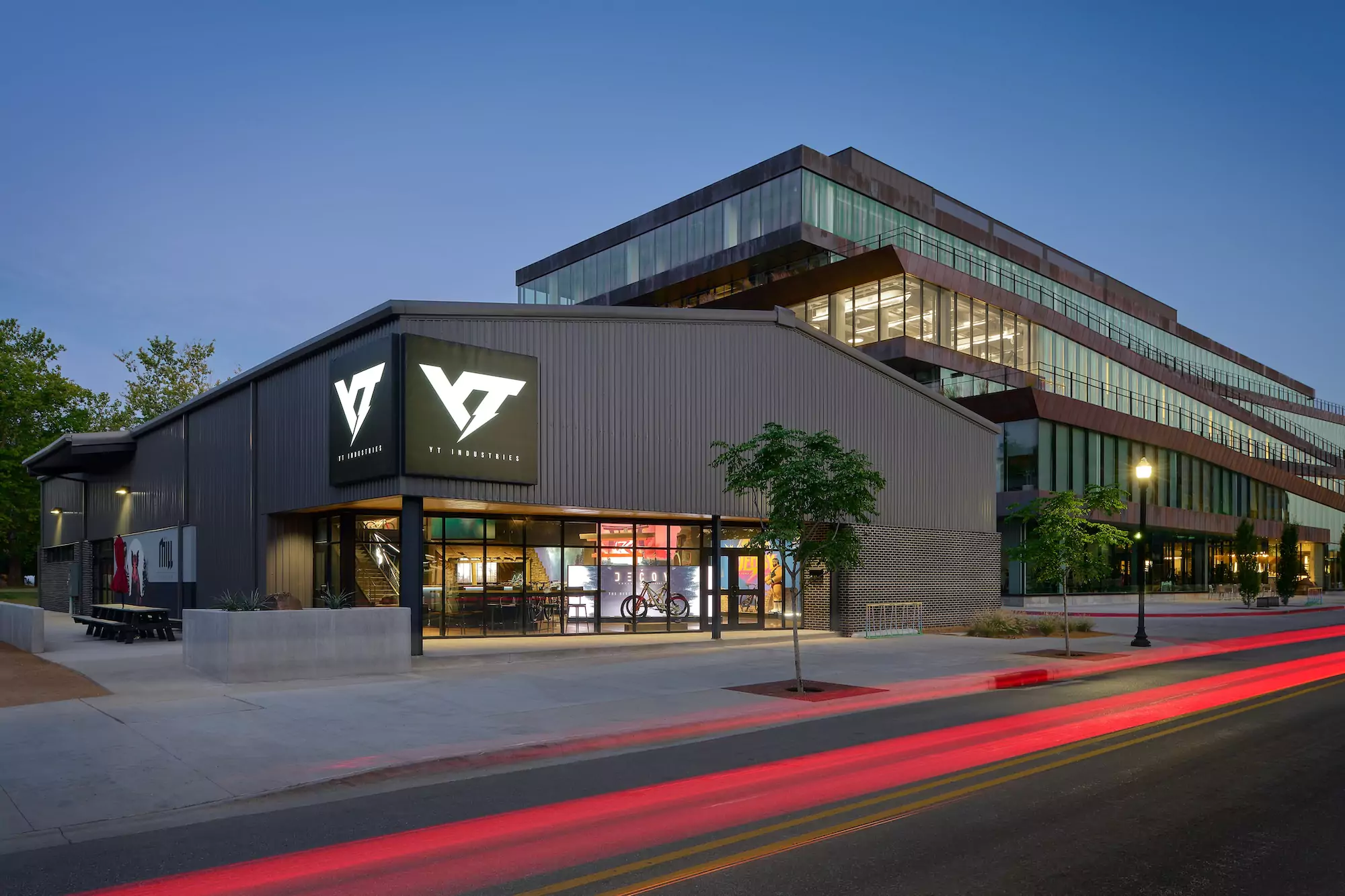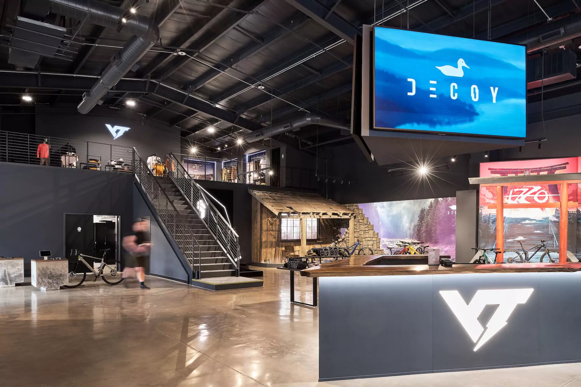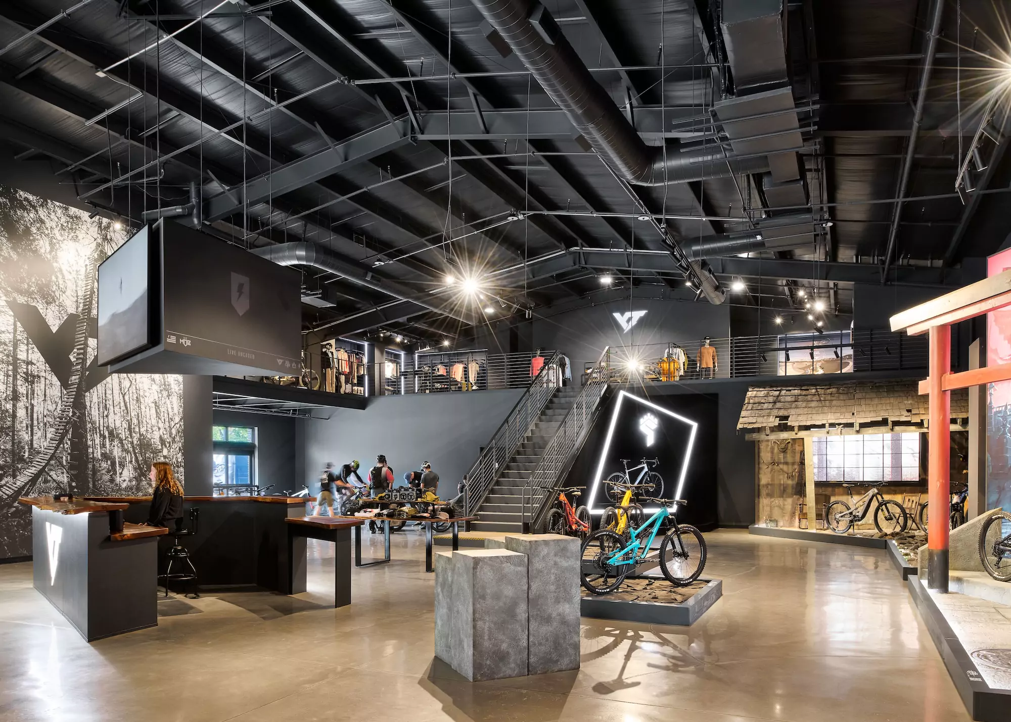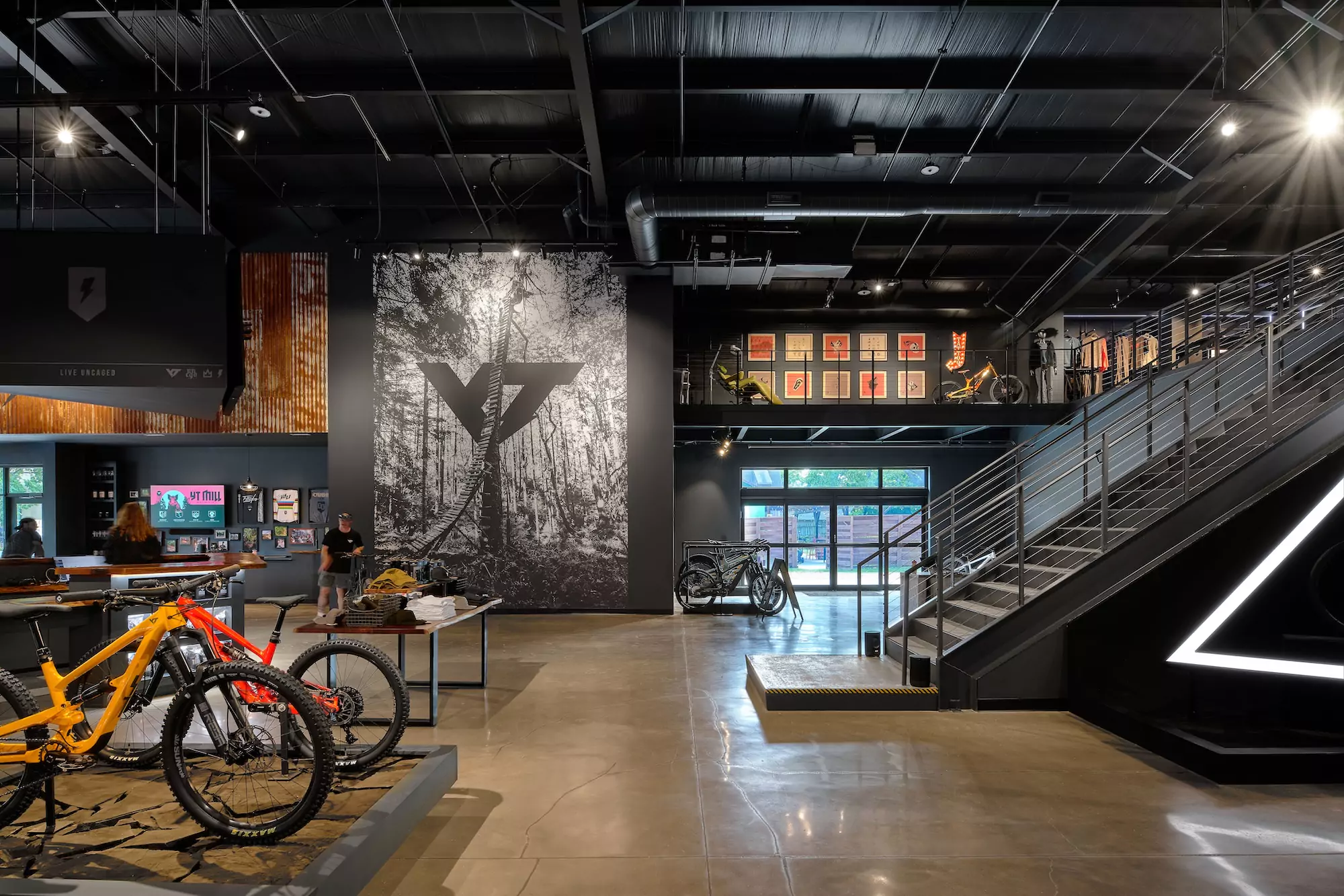 The YT Bentonville Mill was designed in close collaboration with the client to reflect the brand’s bold identity while supporting seamless operations. As part of YT’s direct-to-consumer program, the space immerses riders and fans with the brand through bike demos, events, and interactive displays.